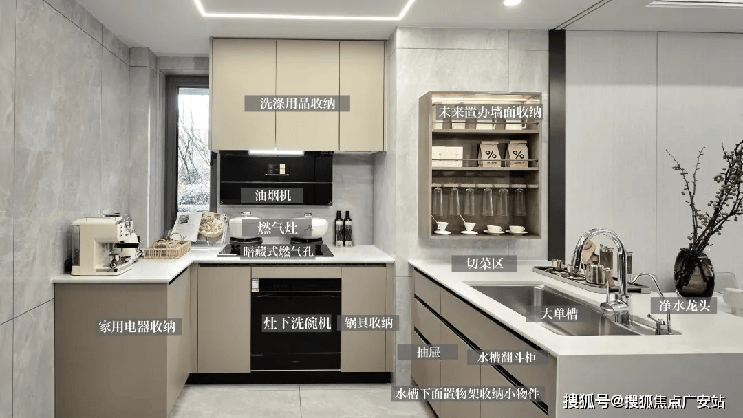 厨房吸油烟机、灶具和洗碗机三件套全数采用方太的高端系列,这个油烟机利用时几乎是静音的,概况还有一层防油膜,手势无接触就能够节制开关,利用起来愈加舒服、便利!