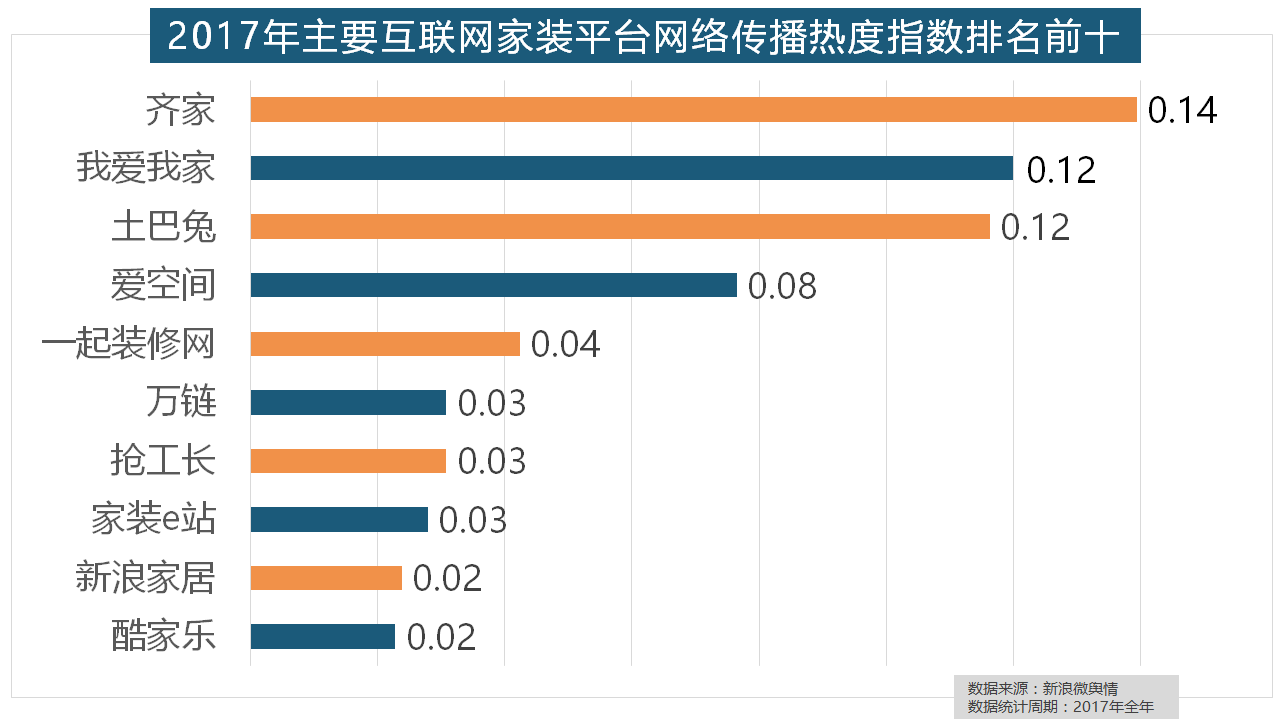 除各保守家拆设想企业逐鹿我国度拆市场外,近年来,一众互联网家拆平台也前来分一杯羹。据新浪微舆情对我国次要互联网家拆平台大数据阐发显示,2017年,我爱我家、土巴兔、爱空间、一路拆修网的收集热度指数排名前五,万链、抢工长、家拆e坐、新浪家居、酷家乐正在年度互联网家拆平台热度榜上排名第六到第十位。